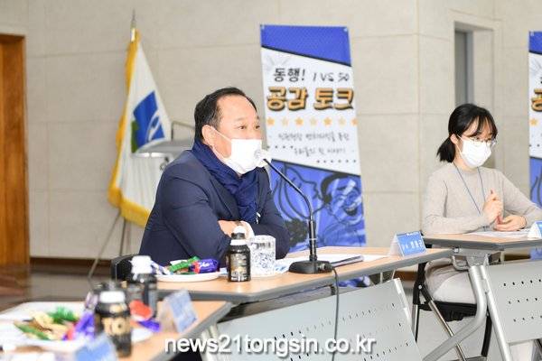 정동균 양평군수와 양평군 소속 공무원 40명은 지난 10월28일 (수) 군청 대회의실에서 “친절은 무엇인가”라는 주제로 동행! 1 vs 50 공감토크를 개최했다.