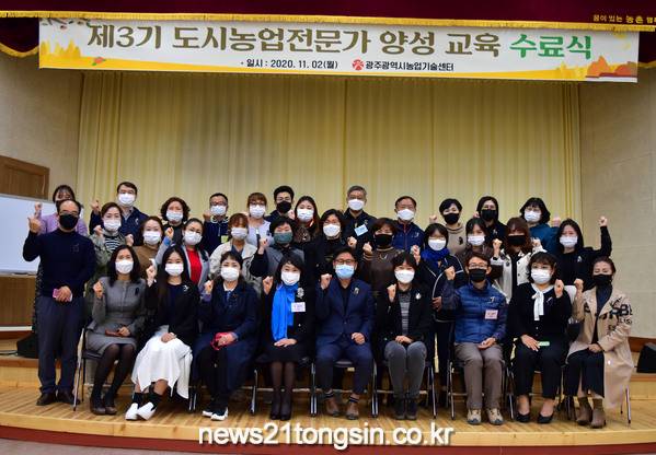 광주광역시농업기술센터에서는 2일 ‘제3기 도시농업전문가 양성교육’ 수료식을 열고 3기 과정을 마무리했다. 광주광역시 농업기술센터는 지난해부터 농림축산식품부의 도시농업 전문인력 양성기관으로 지정받아 '도시농업의 육성 및 지원에 관한 법률'에 따라 도시농업 전문가 교육을 운영하고 있다.