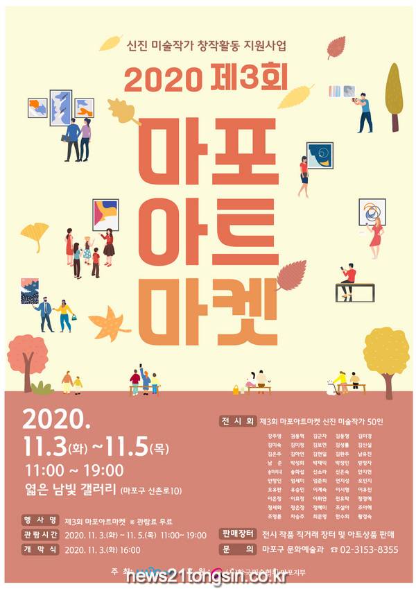 제3회를 맞이하는 올해 마포아트마켓 개최를 위해 구는 지난 7월 2주간 작가 공개모집을 통해 참여자를 모집했고, 출품 심사를 거쳐 67명의 신청 작가 중 최종 50명을 선발한 바 있다. 기존 계획으로는 9월 중 마포중앙도서관에서 행사를 진행하려 하였으나 신종 코로나바이러스 감염증(코로나19) 확산세가 진정되지 않자 부득이하게 행사를 연기해 오는 11월 3일 민간 갤러리에서 마포아트마켓을 진행하게 됐다.