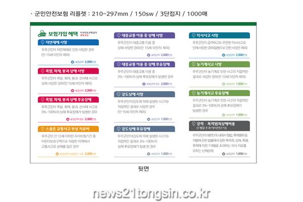 군민안전보험은 무주군 전 군민과 주소 등록외국인을 대상으로 별도의 가입 절차를 밟지 않아도 누구나 혜택을 받을 수 있으며, 타 보험가입 여부와 관계없이 중복 보장된다. 보험은 전·출입에 따라 자동 가입 또는 해지되며 타 지역에서 사고 피해를 입었을 경우에도 보상 받을 수 있다. 백기종 안전재난과장은 "피보험자와 법정 상속인이 반드시 청구해야만 보상을 받을 수 있다"면서 "생명보다 중요한 것은 없는 만큼 불의의 사고와 재해재난 예방에 만전을 기하겠다"고 말했다. 한편, 군민안전보험 관련사항은 무주군청 안전재난과(063-320-2265), 지방재정공제회(02-6900-2200)로 문의하면 된다.
