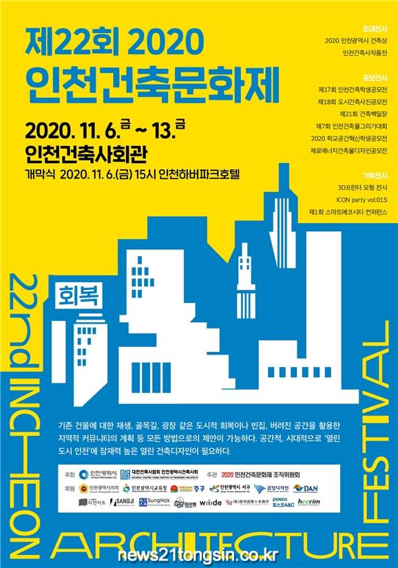 ‘인천건축문화제’는 1999년부터 매년 개최하였으며 올해는 22번째로 기존 건물의 재생, 골목길, 광장 같은 도시적 회복을 의미로 ‘회복’이라는 주제로 꾸며졌다.