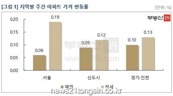 6일 아파트114가 발표한 '수도권 주간 아파트 시장동향'에 따르면 이달 첫째주 서울 아파트 전세값 상승률은 0.19%로 지난 2015년 11월 첫째주(0.21%) 이후 6년 만에 최고치를 기록했다.