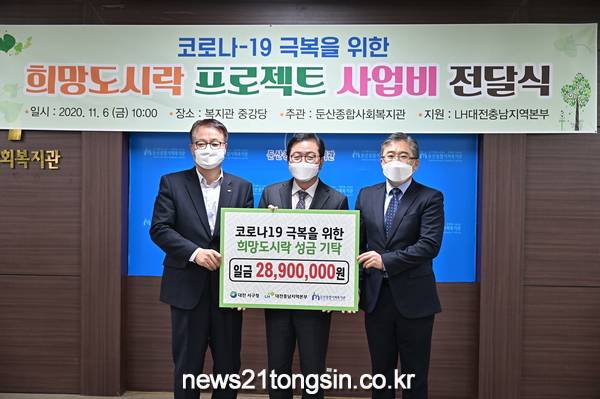 LH 대전충남지역본부(본부장 최화묵)는 코로나19로 인한 후원감소로 끼니해결에 어려움을 겪고 있는 사회적 취약계층에 건강한 먹거리를 제공하는 희망도시락 프로젝트를 위해 성금 2,890만원을 대전 서구청과 둔산종합사회복지관에 전달했다.