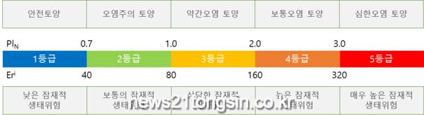 옥수수 재배 토양의 토양건강성 평가 결과 조사지역 모두 토양오염 우려기준(1 지역)을 만족하였고, Nemerow 오염지수(PIN)는 0.09~0.24로 오염되지 않은 1등급(기준 0.7 미만)의 안전 토양이었으며 또한 토양의 잠재적 생태위험 요소를 판단하는 생태위험도 계수는 19.8~31.7(평균 24.7)로 1등급 기준인 40 미만을 모두 만족하여 향후에도 안전한 농작물 재배가 가능한 토양으로 판정되었다.