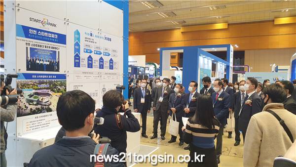 인천시는 <‘더 좋은 일자리, 지속가능한 일자리창출’ 미래 일자리, 인천이 앞장선다 >를 주제로 ▲인천형 뉴딜 ▲인천 스타트업파크 ▲인천 산업단지 대개조 ▲시-군구 상생협력 특화일자리 사업 ▲ 고용안정 선재대응 패키지 지원사업 등 인천이 선도적으로 추진하고 있는 우수정책들을 소개하는 등 홍보관을 성황리에 운영했다.