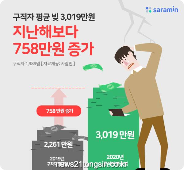 코로나19로 취업 시장이 얼어붙은 가운데, 구직자들의 빚도 늘어나 이중고를 겪고 있는 것으로 나타났다.