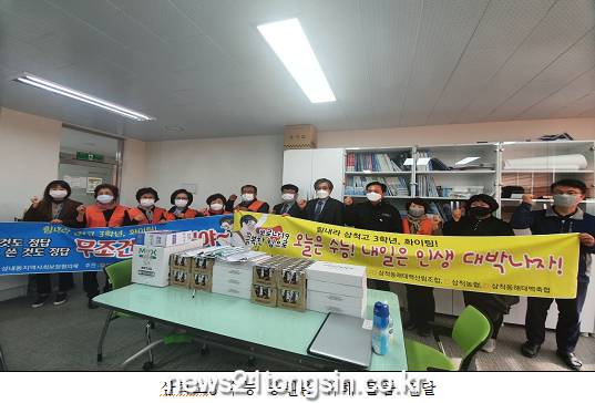 성내동지역사회보장협의체(위원장 정진교) 위원들과 성내동 맞춤형복지팀은 지난 18일(수) 수능 2주전인 삼척고등학교 3학년 교무실을 방문하고 찹쌀떡을 전달하며 학생들을 응원하고 격려하였다.