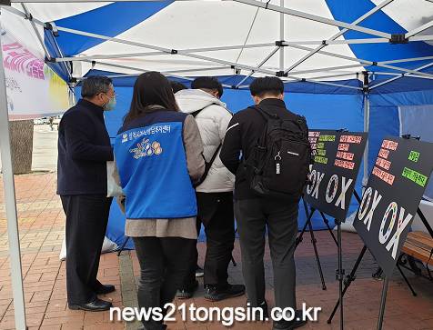 4단계의 OX퀴즈를 풀면서 자살에 대해 잘못 알고 있는 것들을 제대로 인식할 수 있는 교육효과와 더불어 퀴즈 참여 후에 핫팩과 홍보물품을 나눠주며 즐길 수 있는 이벤트가 됐다.