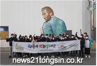 특히 이번 벽화작업을 이끈 우리동네벽화봉사단(단장 김상훈)은 오랜 기간 도심 곳곳에 벽화봉사를 해 온 순수 자원봉사단체로서 매번 회비를 걷어 벽화봉사에 참여할 만큼 열정적인 시민들이 모였다. 인천시청 후문 옹벽의 ‘인천의 색, 인천의 위인들’이라는 작품에도 함께 했다.