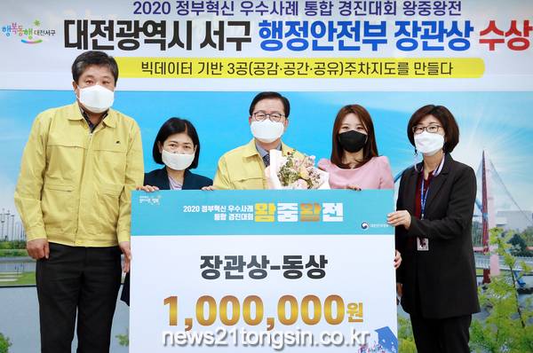 대전 서구(구청장 장종태)가 행정안전부가 주관하는 ‘2020 정부혁신 우수사례 통합 경진대회 왕중왕전’에서 행안부 장관상을 받았다고 22일 밝혔다.