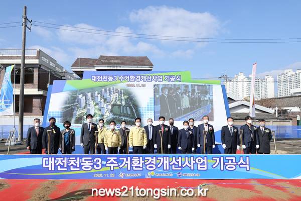 LH(부사장 장충모)는 23일 오전, 대전천동3 사업지구 내에서 대전광역시장(허태정), 동구청장(황인호), 동구 국회의원(장철민), 지역주민 등 300여명이 참석한 가운데 ‘대전천동3 주거환경개선사업 기공식’을 개최했다.