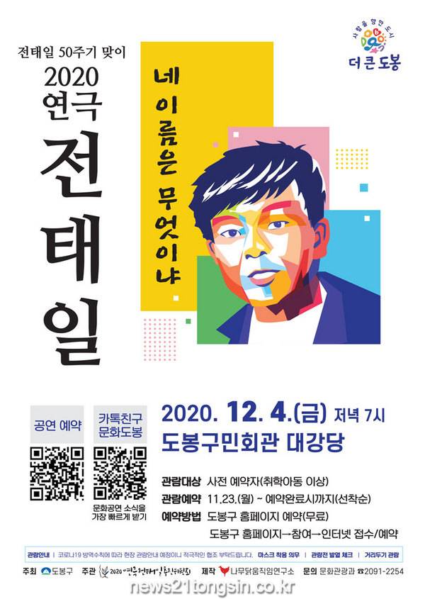 도봉구(구청장 이동진)가 12월 4일 저녁 7시, 도봉구민회관 대강당에서<2020 연극 전태일 ‘네 이름은 무엇이냐’> 연극 공연을 개최한다.