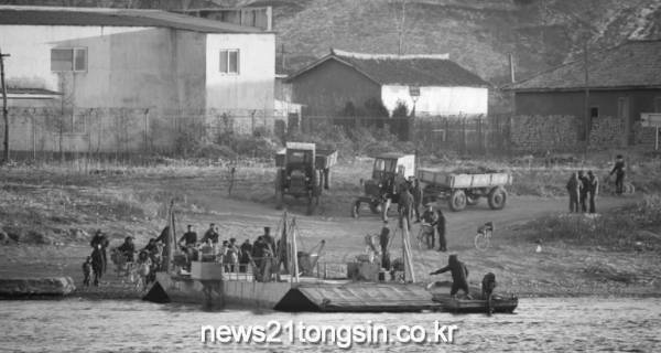 강 건너 북한 주민들이 바삐 움직이는 모습이 보인다.