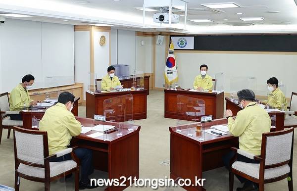허태정 대전시장 주재로 5개 자치구 구청장 등이 참여한 이날 간담회에서는 ‘중기부 세종 이전 추진에 따른 대응방안’과 ‘코로나19 전국 확산에 따른 거리두기 격상 방안’에 대해 집중 논의했다.