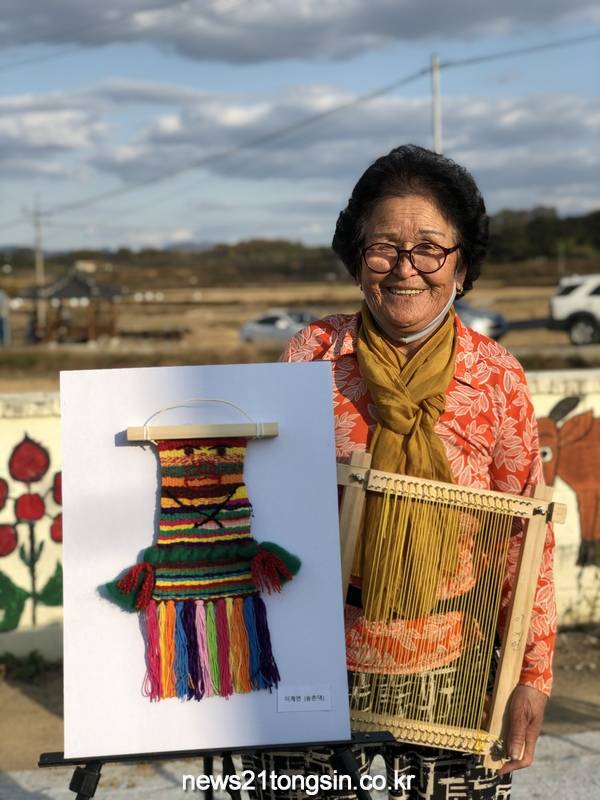 전시회는 ‘예술가 一村맺기’ 프로젝트에 참여한 김지용 작가의 작품과 14명의 마을 주민이 여러 색의 실로 그림을 짜 넣어 만든 타피스트리 작품을 선보였다.