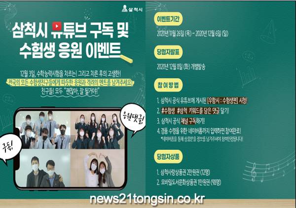 삼척시가 12월 3일 치러지는 대학수학능력시험을 앞두고, 삼척시 공식 유튜브에서 수험생을 응원하는 ‘괜찮아, 잘 될거야.’ 이벤트를 진행하고 있다.