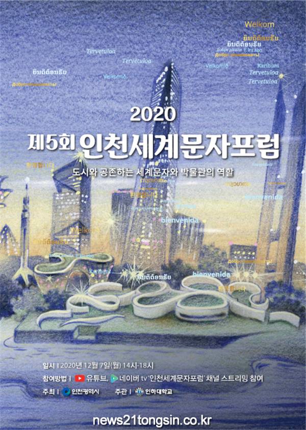 인천광역시(시장 박남춘)는 2022년 개관을 목표로 순항 중인 국립세계문자박물관을 시민에게 알리고 세계문자 정보를 공유하고자 12월 7일“2020 인천세계문자 포럼”을 온라인으로 개최한다고 밝혔다.