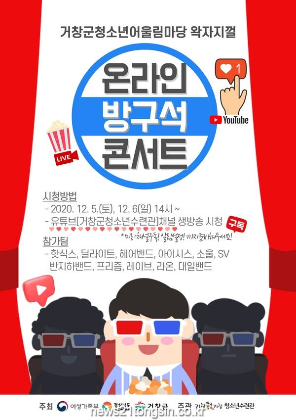 거창군은 오는 5일부터 6일까지 이틀에 걸쳐 제4차 및 제5차 청소년어울림마당 ‘왁자지껄 방구석 온라인 콘서트’를 개최한다고 2일 밝혔다.