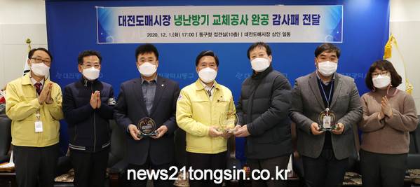 이병열 대전도매시장 상인회장은 “대전도매시장 상인들의 감사한 마음을 전달하고자 감사패를 준비했다”며 “황인호 동구청장과 우대진 주무관의 적극적인 관심과 노력으로 대전도매시장이 한층 쾌적한 시설을 갖추게 돼 무척 감사드린다”고 말했다.