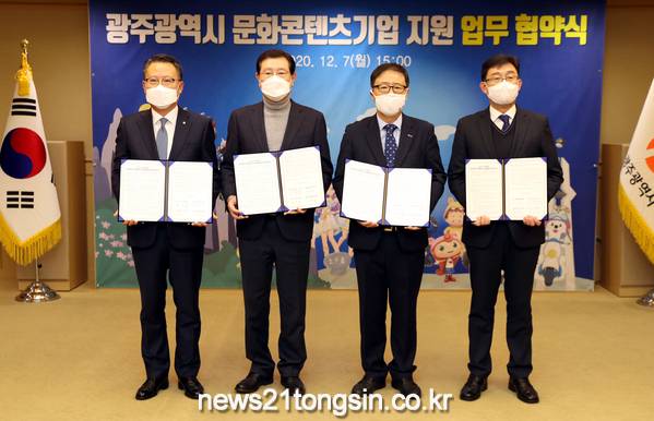 지난 7일 광주시는 기술보증기금, 광주은행, 광주전남지방중소벤처기업청 등과 ‘광주시 문화콘텐츠기업 맞춤형 지원제도’ 업무협약을 체결했다.
