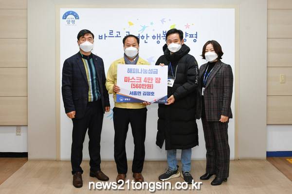 정동균 양평군수는 “코로나가 2.5단계로 격상이 된 가운데 이렇게 나눔을 실천해 주셔서 깊은 감사를 드리며, 덕분에 주민들이 코로나19를 극복하는 데 큰 도움이 될 것 같다.”고 답했다.