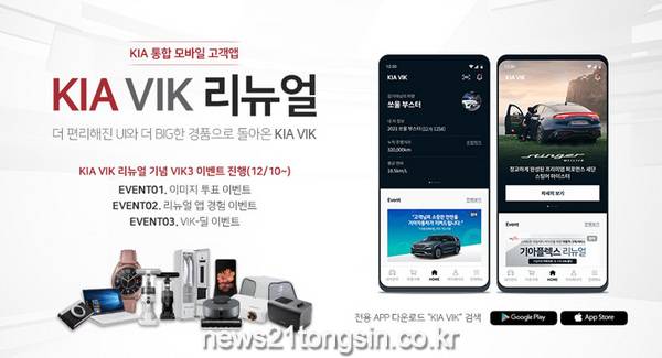 기아자동차㈜가 모바일 환경과 사용자 트렌드의 변화, 그리고 2년여 간의 실 고객 사용성 의견을 반영하여 통합 모바일 고객앱 ‘KIA VIK’을 새롭게 리뉴얼 런칭하고, 감사 고객 이벤트를 실시한다.