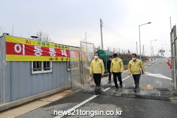 의성군은 고병원성 조류인플루엔자(AI) 차단을 위해 지난 4일부터 24시간 거점소독시설 및 통제초소를 확대․운영하고 있다.