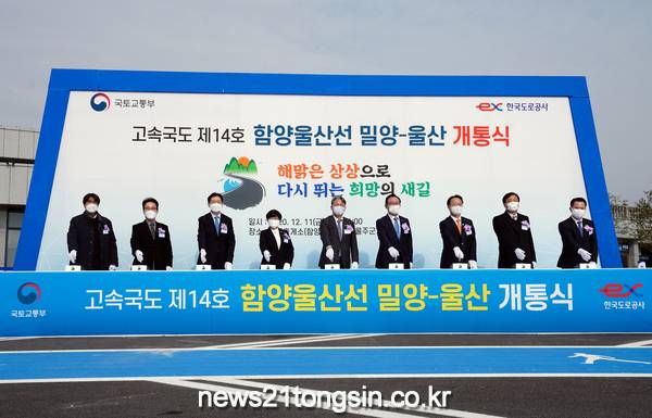 또한 “고속도로 하나를 늘려가는 것에 끝나는 것이 아니라 수도권처럼 편리하고 촘촘한 도로교통, 대중교통망을 만들어가야 한다”면서 “오늘 개통하는 새길이 동남권 메가시티를 만들어가는 첫 출발이 되길 기대한다”고 밝혔다.