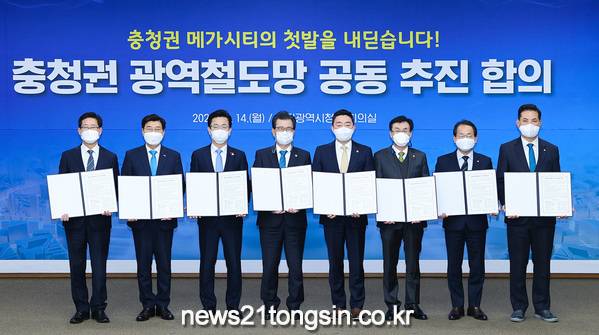 충청권 광역철도망 건설이 드디어 추진동력을 얻어냈다. 대전시와 세종시, 충북, 충남은 14일 오전 대전 시청 대회의실에서‘충청권 광역철도망 구축을 위한 공동 건의문’에 서명했다.