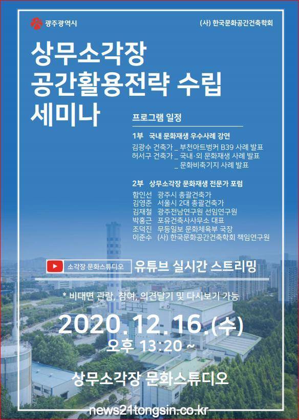 16일 유튜브를 통해 온라인으로 광주광역시 ‘소각장 공장동 공간활용 전략 수립을 위한 세미나’를 개최한다.