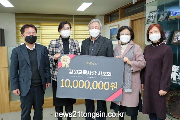 강원도교육청(교육감 민병희)은 16일(수) 오전 11시 30분, 강원교육사랑 사모회로부터 강원도 지역인재 육성을 위한 장학금 천만원을 기탁받았다고 밝혔다.
