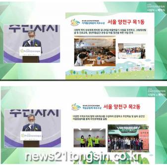 목1동은 지역 활성화 분야에서 사회적 약자 모두에게 편리한 ‘유니버셜 마을 만들 기’, 코로나19의 장기화 및 높은 청년 실업률로 인한 청년소외를 극복하기 위한 ‘청 주민협치과 정경도 2620-3086 조미희 2620-3094 김유미 2620-3096 년참여 유휴공간 발굴·운영 사업’ 등이 우수한 평가를 받았으며, 목2동은 학습공동 체 분야에서 어울림쉼터와 용왕산 숲속활력소를 활용한 다양한 커뮤니티 사업, 양천구 18개 행정동에 도입된 ‘자치회관 수강신청 전자문서 시스템’, 언택트 학습 플랫폼 사업인 ‘ON通(통) 집놀이터’ 등이 우수한 평가를 받았다.