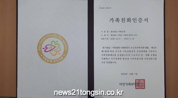 거창군은 여성가족부가 주관하는 ‘가족친화인증 우수기관’ 심사에서 재인증을 획득했다고 21일 전했다.