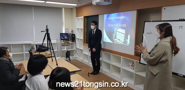 군위고등학교(교장 남준모)는 18일(금) 전교생을 대상으로 고교학점제 학생 선택과목 선정을 위한 ‘공무원 직종 진로직업특강’을 교내 및 온라인으로 생중계를 했다.