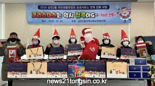 (대구=뉴스21통신) 박창남기자 = 달서구 상인2동 행정복지센터(동장 조은혜)는 상인2동 지역사회보장협의체(위원장 이옥수)와 함께 12월 21일부터 크리스마스를 맞이하여 저소득 아동 35세대에 크리스마스 선물을 전달하는 ‘크리스마스는 역시 집콕이G(feat.산타) 사업’을 추진한다고 밝혔다.