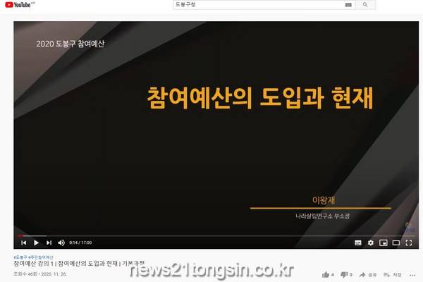 올해 구는 교육 분야에서 코로나19에 선제적으로 대응하고 더 많은 주민에게 주민참여예산 교육 기회를 제공하기 위해 서울시 자치구 최초로 주민참여예산학교 온라인 교육 영상을 제작했다. 교육은 서울시 평생학습포털과 도봉구 공식 유튜브 채널 ‘도봉봉TV’를 통해 운영하고 있다.