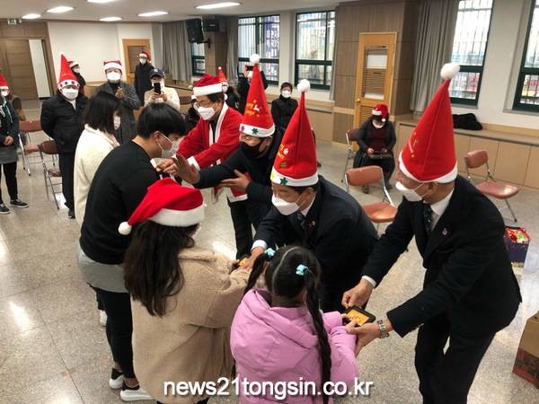 이날 산타클로스로 변장한 자생단체 회원들은 저소득 가정 아동 및 청소년 70명에게 선불교통카드, 과자선물세트, 라면박스를 전달했다.