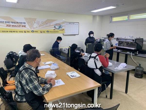 양평군 평생교육과는 2019년부터 양평군장애복지관과 협업하여 성인 장애인들에게 평생교육 가치 실현과 지역사회 재활 및 사회 참여 기회를 제공하는 성인 장애인 평생교육을 지원하였다. 평생교육과의 예산지원으로 양평군장애인복지관에서는 커피바리스타 자격증 취득 교육과정을 운영하였고, 이 과정으로 2019년에는 11명이 실기시험에 응시하여 전원이 바리스타 2급 자격증을 취득하였으며, 3명의 교육생이 카페에 취업하는 성과를 얻었다. 올해는 코로나로 인해 수업 일정이 지연되며 프로그램 진행 자체가 어려운 부분이 있었음에도 불구하고, 12명이 바리스타 2급 자격증 실기시험에 응시하여 전원이 합격하였다.