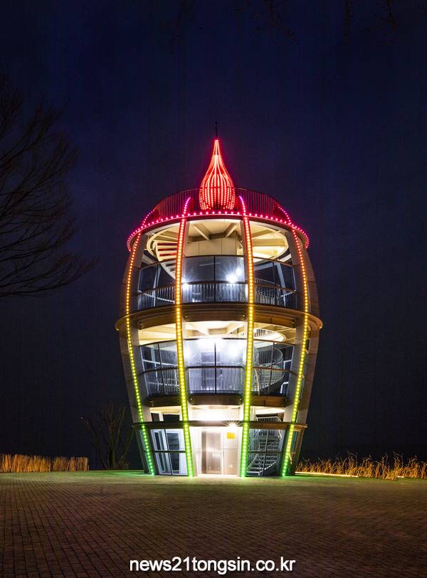 또한 칠곡 평화전망대는 한·미 우정의 공원 조성사업의 일환으로 16억을 투입 2019년 5월 공사를 시작해 지난 2일 준공했으며, 곡면 투명 유리를 통해 낙동강 일대의 전체적인 조망은 물론 다양한 경관조명 연출과 불꽃의 역동적인 움직임이 가능해 새로운 관광명소로 자리 잡을 것으로 기대된다.