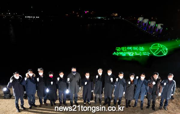 특히 참석 내빈이 점등 버튼을 누르자 칠곡 평화전망대에서 뿜어져 나온 화려한 불빛이 낙동강과 칠곡보생태공원 일대의 겨울 밤 하늘을 아름답게 수놓았다.
