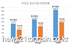 2021년 부안군 국가예산 5,703억원 확보에 이어, 공모사업에도 역대 최고의 성과를 냄으로써, 그동안 민선7기가 추구해 온 ‘협력’의 기치가 ‘지속가능한 발전’의 토대로 나타나고 있다는 분석이다. 주요 공모사업 선정현황을 살펴보면 곰소지구 풍수해생활권 종합정비사업 483억(국242, 도98) 부안 곰소염전 스마트 복합쉼터 조성사업 33억(국20) 스마트 관망관리 인프라 구축사업 39억(국27.3) 공공주도 대규모 해상풍력단지 개발지원사업 150억(국36, 도6) 2021년 어촌뉴딜(왕포, 작당) 94.5억(국65, 도83) 2021년 어촌뉴딜(치도) 93억(국64, 도83) 부안 상권르네상스사업 80억(국40, 도8) 푸드 앤 레포츠 센터(부안 푸드플랜 연계) 140억(국46억, 도3.6), 부안 청우 문화센터 19.4억(국10) 신재생에너지 융복합 지원사업 14.5억(국8.4) 등이다.