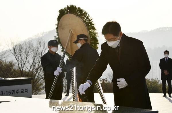 김경수 경남도지사가 4일 오전 국립3.15민주묘지와 창원충혼탑에 참배하는 것으로 2021년 새해 업무를 시작했다.