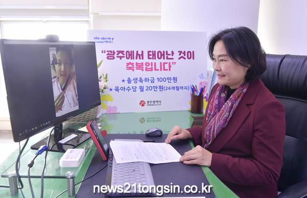 곽현미 시 여성가족국장은 새해 1월1일 0시00분 광주 문화여성병원에서 태어난 아이의 부모에게 축하 영상메시지를 전달하는 한편, 출생육아수당 신청방법을 상세히 안내했다.