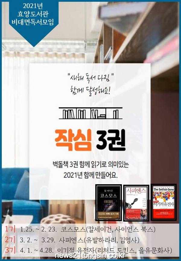 이천시립효양도서관은 오는 1월 25일부터 신년을 맞은 시민들에게 벽돌책 3권의 양서를 완독할 수 있는 기회를 제공하고자 ‘작심 읽기 3권’을 운영한다.