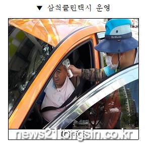 삼척시가 전국적으로 감염확산 지속 등 여전한 코로나19의 긴장 상황 속에서 지역 감염 확산을 방지하고자 작년 하반기에 이어 올해도 관내 모든 택시 대상으로 ‘삼척클린택시’를 운영하고 있다.