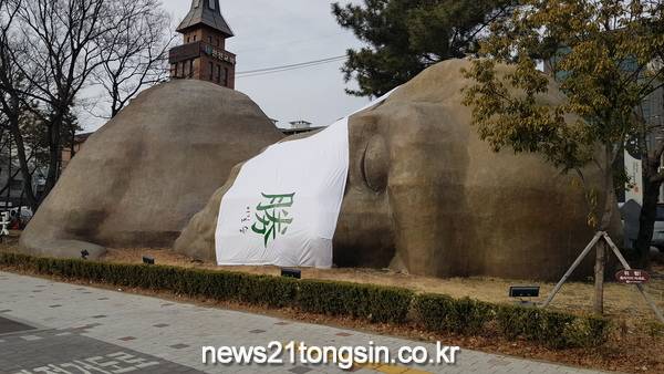 (대구=뉴스21통신) 박창남기자 = 달서구는 지난해 5월부터 이어온 마스크쓰기 캠페인의 일환으로 선사시대로 랜드마크인 조형물 마스크에 이길 승(勝)자를 새겨 코로나19 장기화로 지쳐있는 구민들에게 희망의 메시지를 전한다.