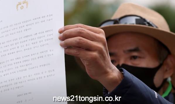 피살된 공무원 형 이래진씨가 문재인 대통령의 편지를 들고 있다.