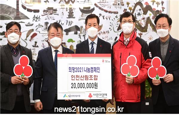 인천광역시(시장 박남춘)는 인천산림조합 최수룡 조합장이‘희망 2021 나눔 캠페인’참여를 위해 자발적으로 불우이웃돕기 성금 2천만원을 인천사회복지공동모금회에 전달했다고 밝혔다.