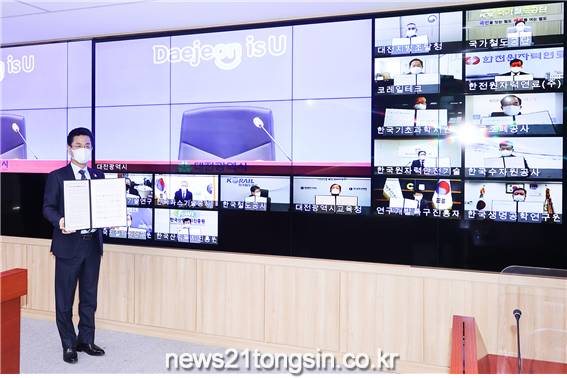 이 날 협약식은 허태정 대전시장과 지역 내 공공기관 19개 기관장이 참여한 가운데, 대전시청 18층 재난영상회의실에서 온라인 영상회의으로 개최됐다.