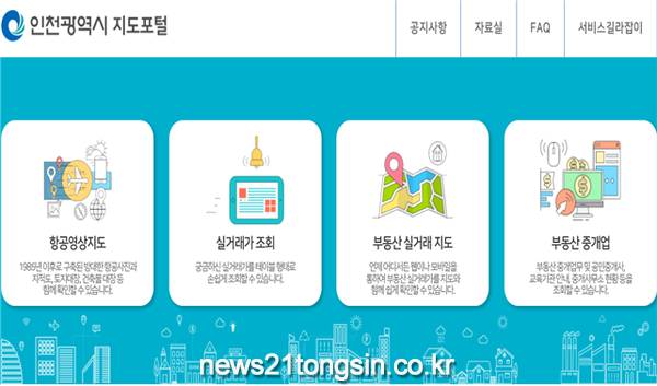 그동안 인천시는 「인천시 지도포털(http://imap.incheon.go.kr/)」을 통해 1985년부터 현재까지 매년 구축한 항공영상 열람서비스를 시행하여 시민의 재산관리 및 각종 지형·지물의 관련 정보 확인 등 다양한 분야에서 활용 할 수 있도록 제공하고 있으며,